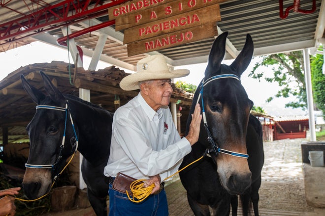 En ese cometido de destacar estos animales hay una persona que se merece todo el reconocimiento y los honores: Ovidio Osorio Orrego, un criador de burros y mulas que a sus 87 años, de la mano de su familia, en el criadero Villa Luz (Girardota, Antioquia), sigue manteniendo viva esta tradición y es un estandarte y un ejemplo para el gremio.